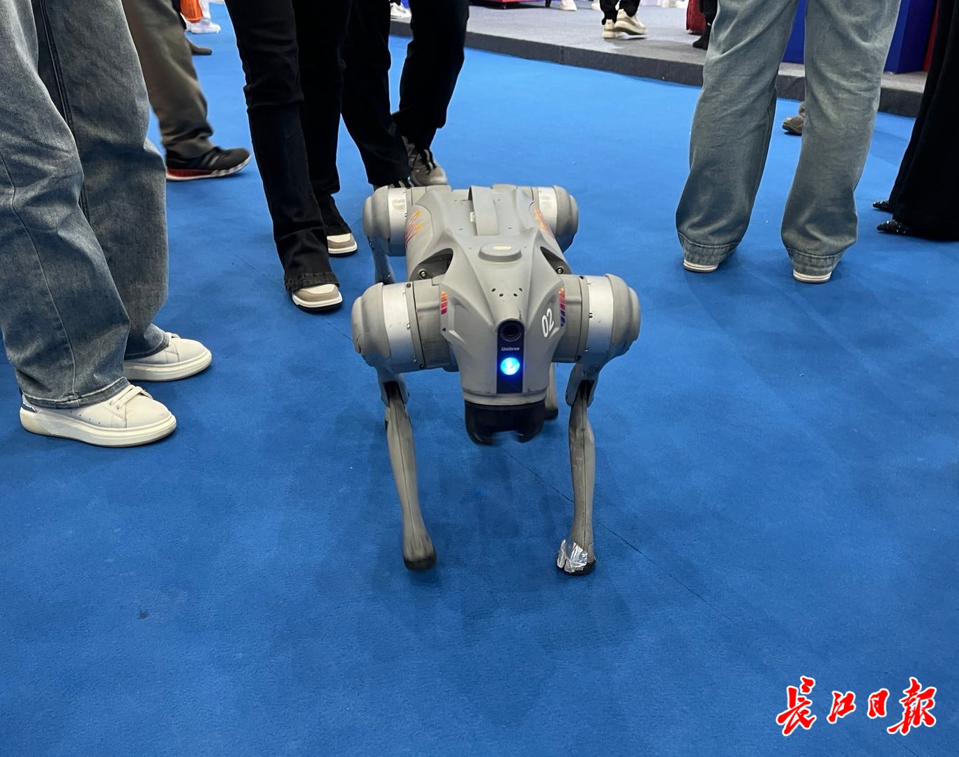 会现场正在当博,器人吸引了浩繁目光一架四脚行走的机,人员稠密的道路上穿越它能够轻松自若地正在,既能够“四只脚”坐立行走同时具备两类行走模式:,的轮女滑动行走也能够用自带。